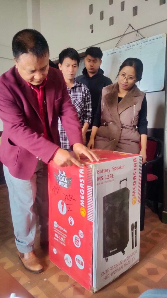 SIAHA, 18 June, 2025 – Atanoh dawh 11:00 AM khata Puhpa K. Hrahmô, MLA, 40-Palak AC Biatuhpa ta Agape Home liata ama peimawh kawpa nata hmâ awpa Portable Bluetooth Speaker with 2 wireless microphones cha Rev. Beirakaw, ES (SM&D) ku liata aly kawpa ta a hlâ.