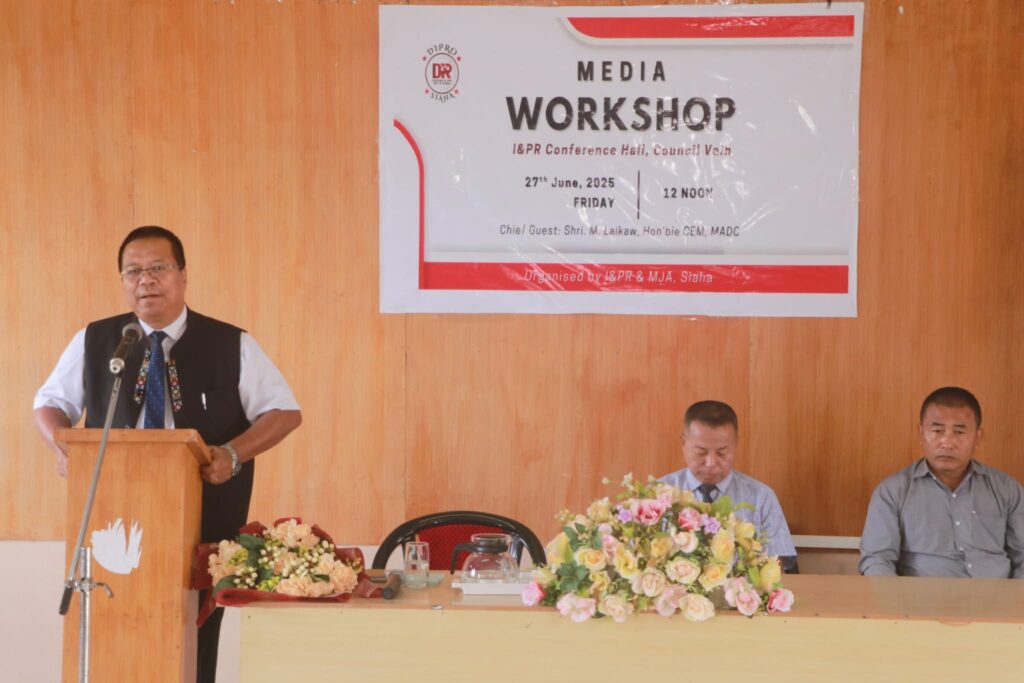 SIAHA, 27 Chhiepa, 2025, Chutynoh – Atanoh dawh 12:00 Noon khata I&PR Conference Hall, Council Vaih, Siaha liata Media Workshop programme ahmâhpa châ ta, Puhpa M. Laikaw, Hon’ble Chief Executive Member, Mara Autonomous District Council chata khichhai laipa (Chief Guest) châpa ta â hmâkhei ei.