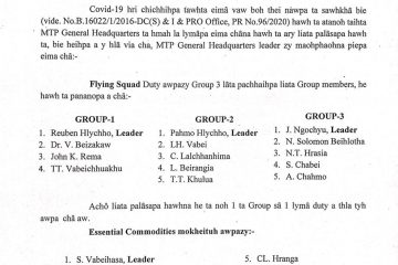 SIAHA, 11 Chhiepa, 2020, Pobienoh – Atanoh kha rai hriana vâ nata châ chuna vâta Bangalore liata avaw y tyhpa Siaha District chyhsazy ta Siaha khichhôh liata Quarantine Centre sâ 6 liata inmate[…]